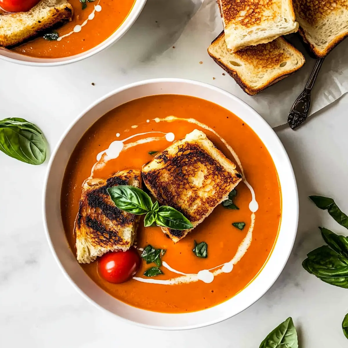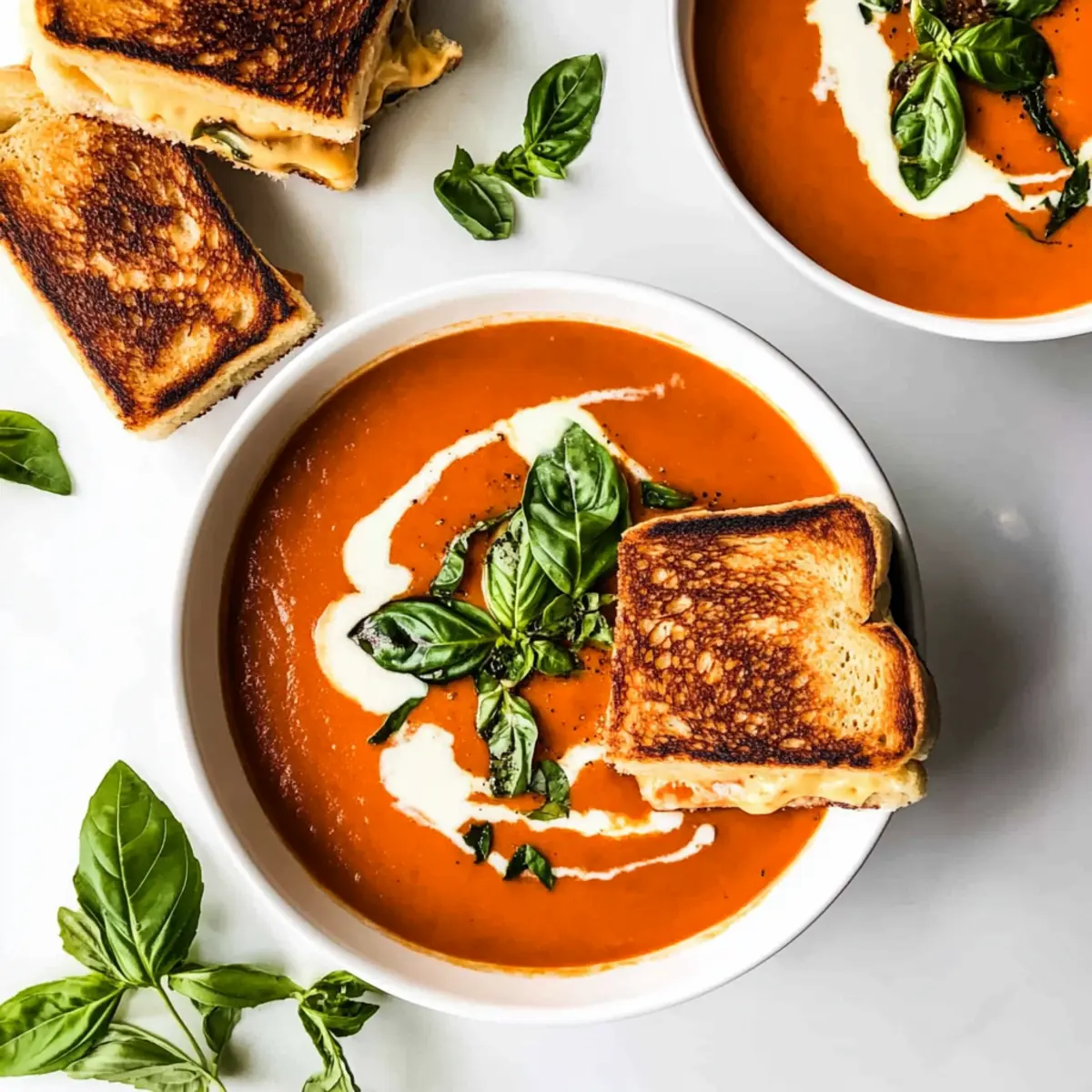 Ladle the creamy roasted tomato soup into bowls, garnishing with additional fresh basil for a pop of color and flavor. This warming dish pairs wonderfully with grilled cheese sandwiches or a crisp side salad, making it a fabulous, cozy meal for any occasion.