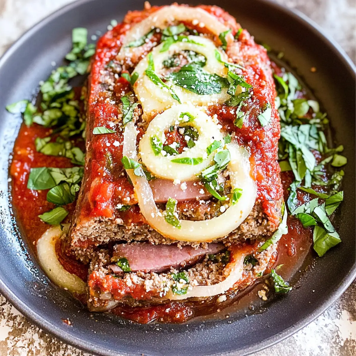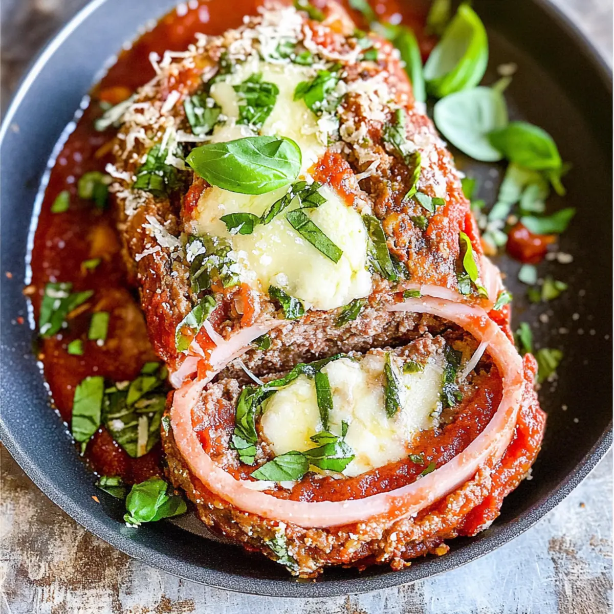 Comforting, this Sicilian Meatloaf redefines cozy dining with its rich blend of flavors. Unique twist: The ham and mozzarella filling takes traditional meatloaf up a notch, delivering a surprise in every slice. Family-friendly, it’s perfect for weeknight dinners or special occasions. Versatile ingredients allow you to swap proteins or add veggies, keeping it fresh each time. Time-saving preparation makes this a go-to recipe for busy cooks looking to impress. Enjoy it alongside a simple green salad for a complete meal!