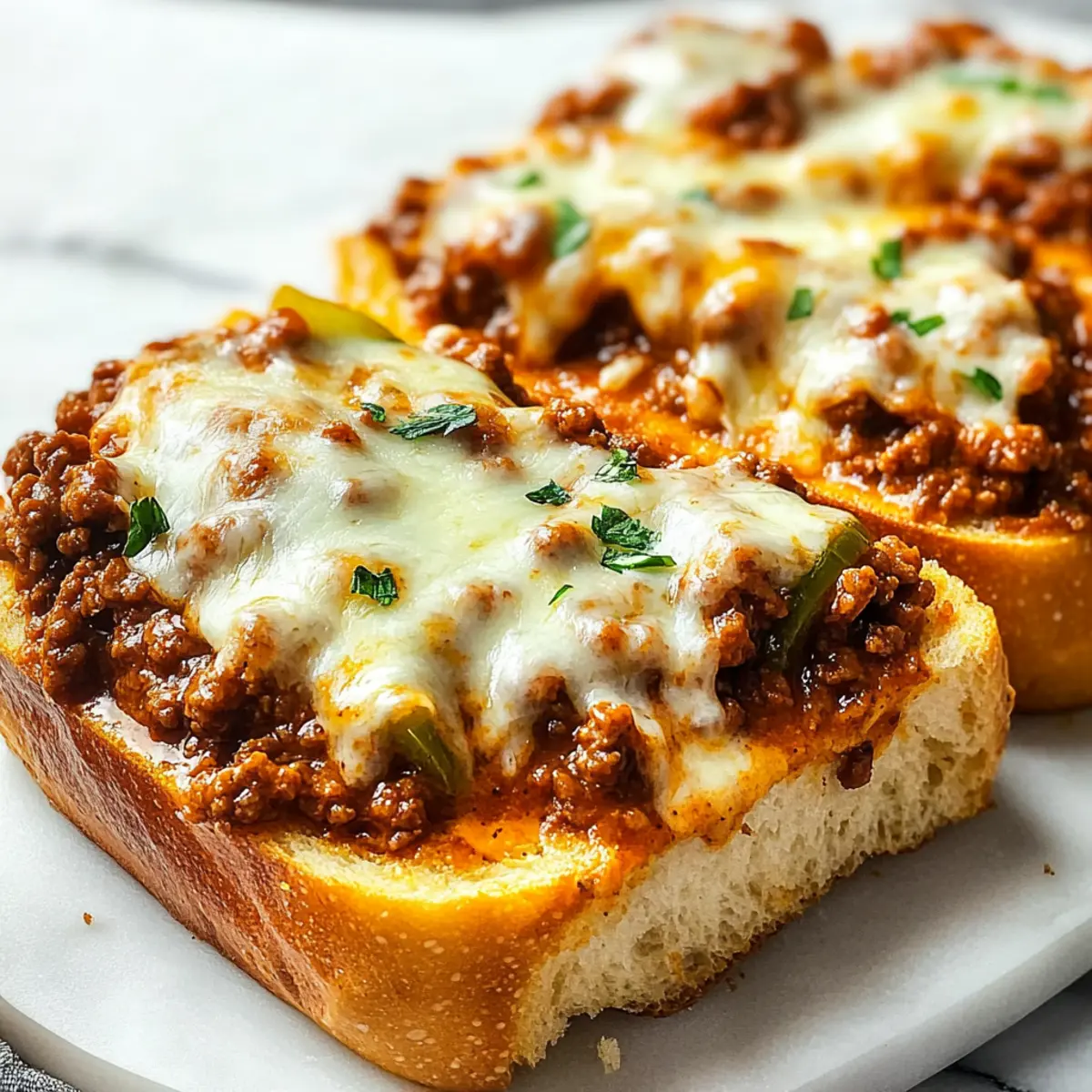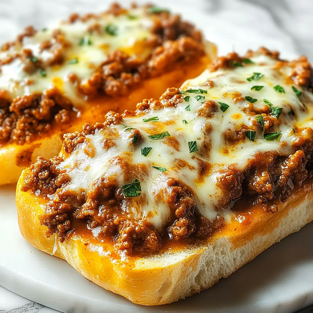 Heavenly Texture: The crispy garlic bread perfectly contrasts the saucy beef and melted cheese, ensuring every bite is a flavor explosion.