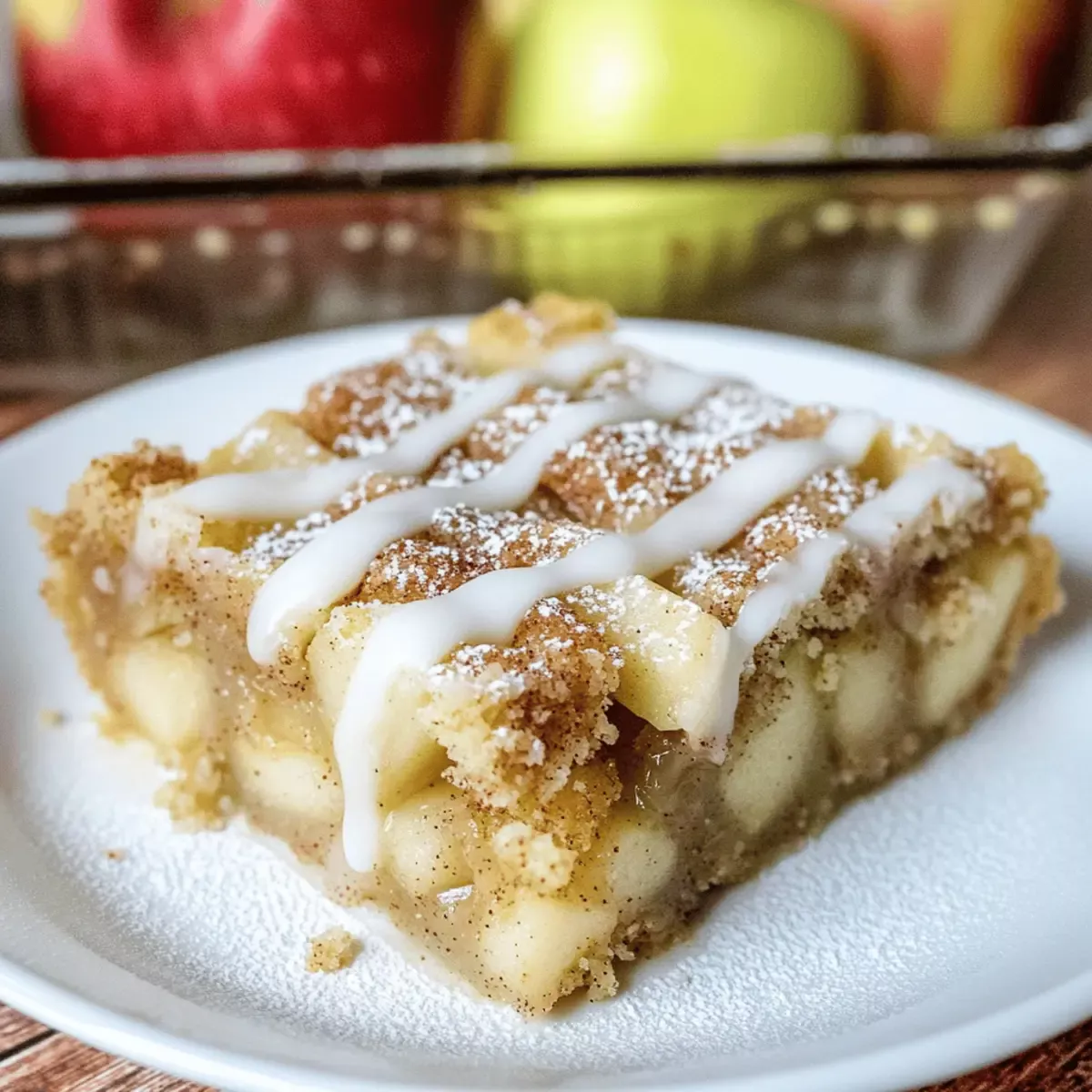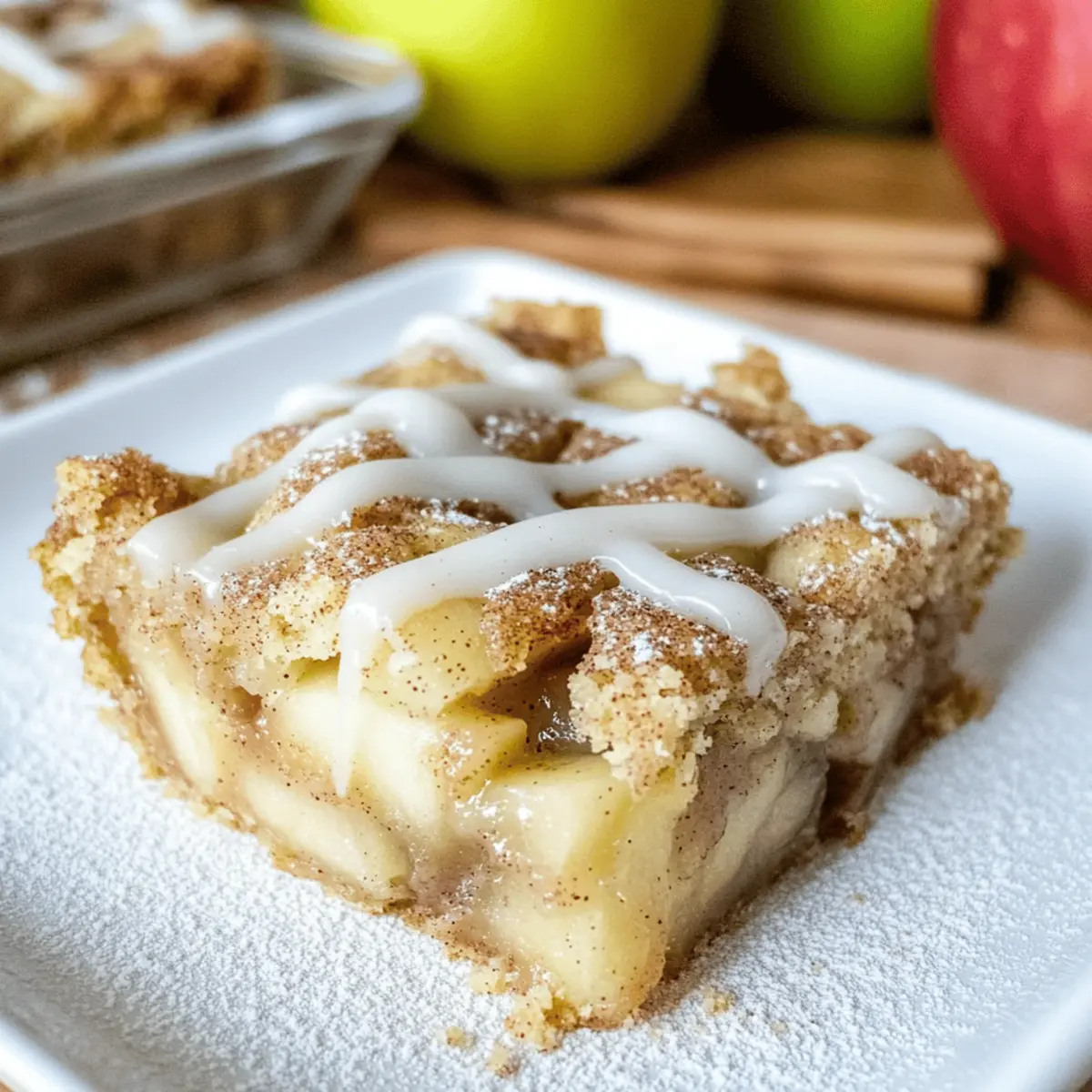 Once your bars have cooled completely, drizzle the glaze over the top. Cut the dessert into 9 squares, using a sharp knife for clean edges. These Snickerdoodle Apple Bars are now ready to serve—delight your family with this warm, sweet treat that is bound to have them craving more!