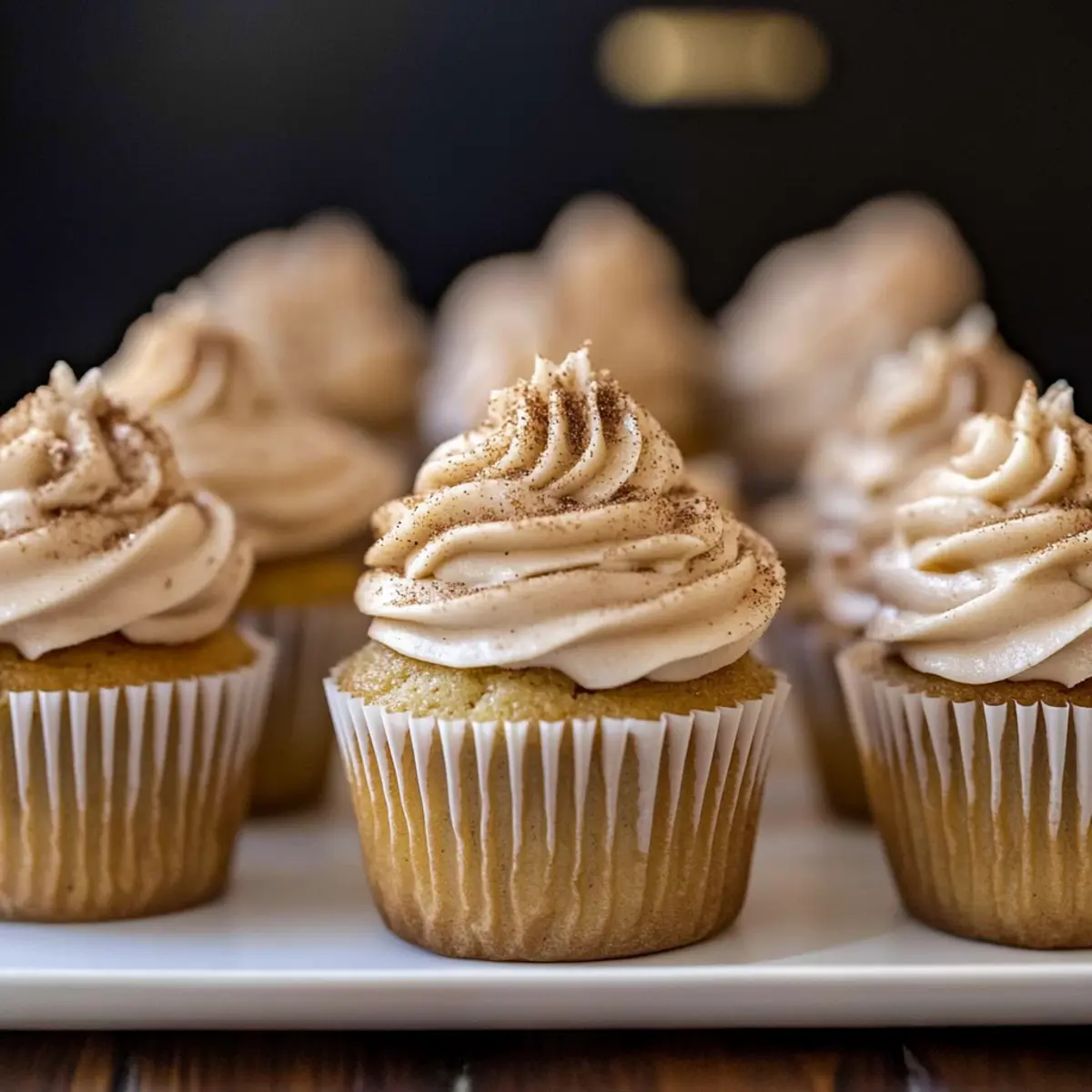 - Frost the cooled cupcakes generously and sprinkle with brown sugar and cinnamon.
