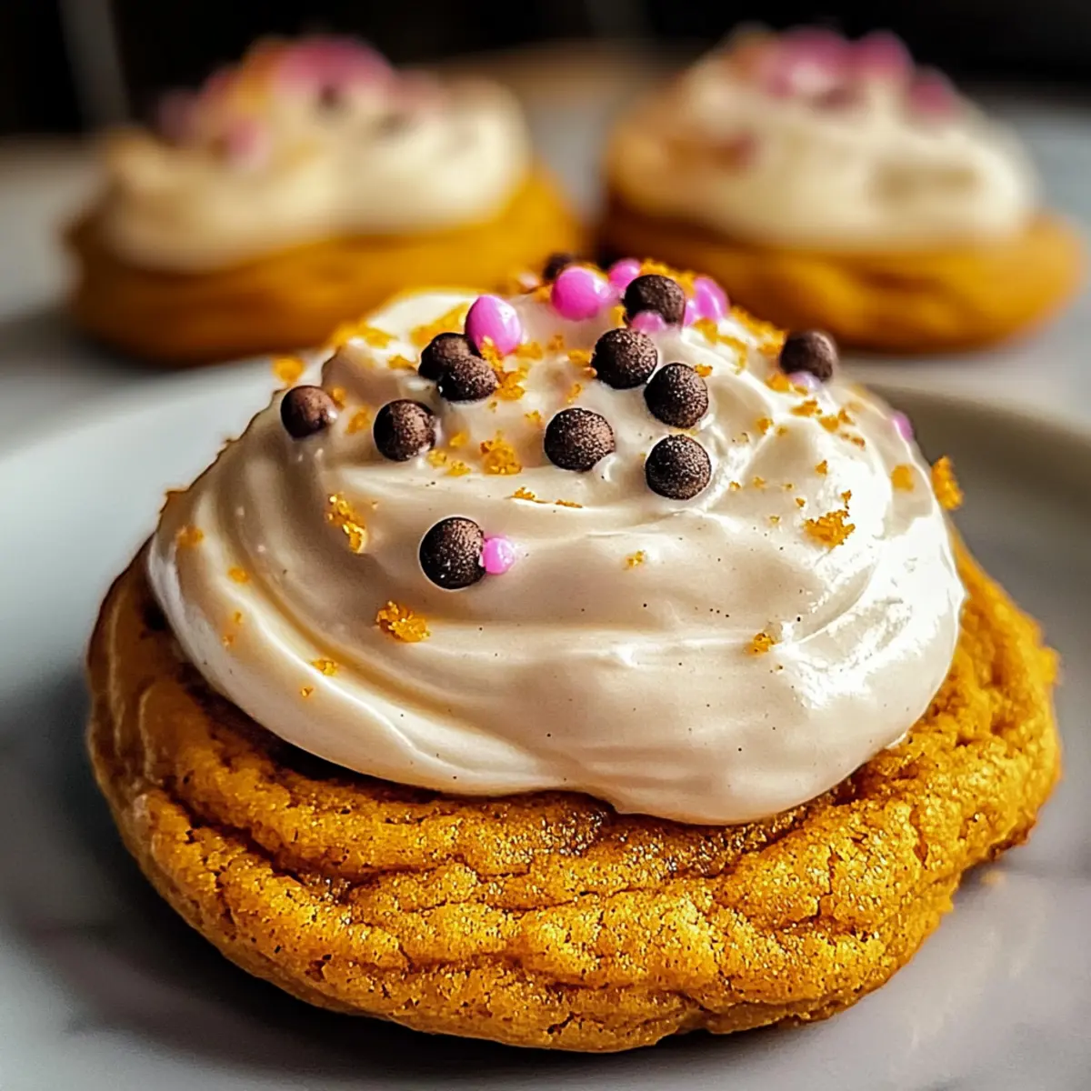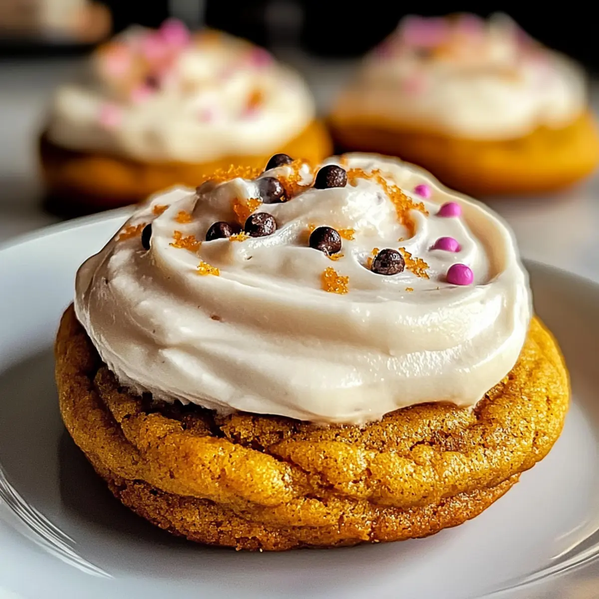 Once the cookies are completely cooled, generously frost each one with the cream cheese frosting using a knife or a spatula. If desired, sprinkle a pinch of cinnamon or festive sprinkles on top for an extra touch. This final step transforms your delicious Soft Pumpkin Cookies into charming autumn treats ready to be shared!