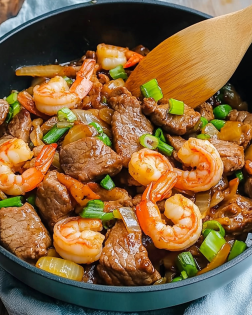 Looking for a meal that’s both quick and packed with flavor? This Steak and Shrimp Stir-Fry is the answer! Juicy steak and tender shrimp come together with vibrant vegetables and a savory sauce to create a mouthwatering dish that feels like a restaurant-quality dinner—right from your own kitchen. Perfect for busy weeknights or when you want something special without the fuss, this stir-fry is sure to become a favorite go-to recipe.