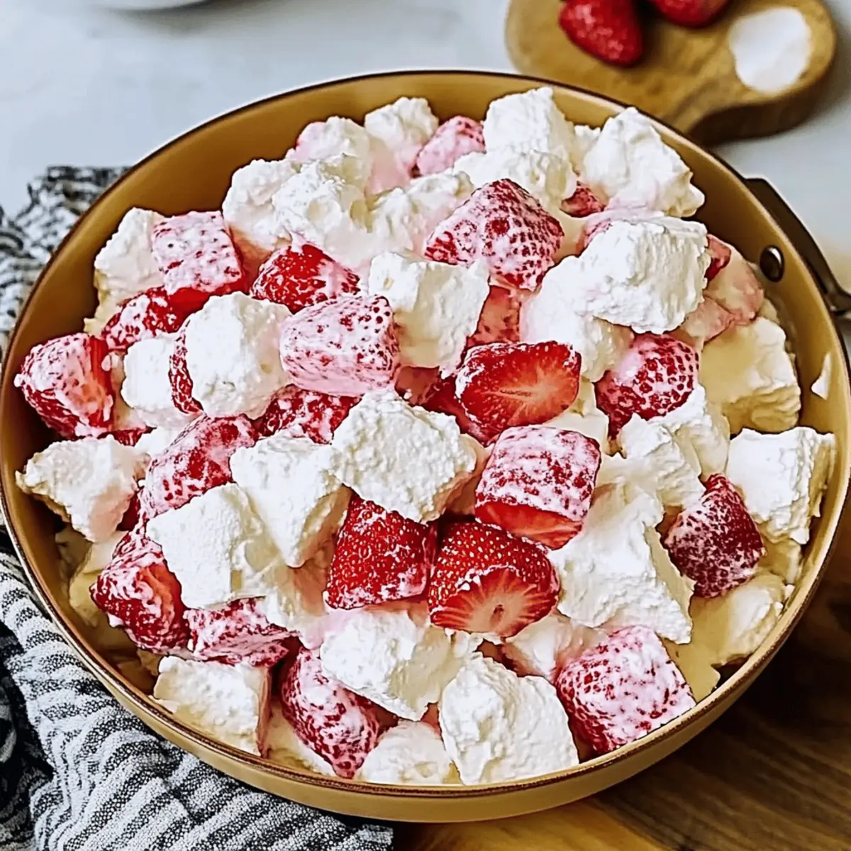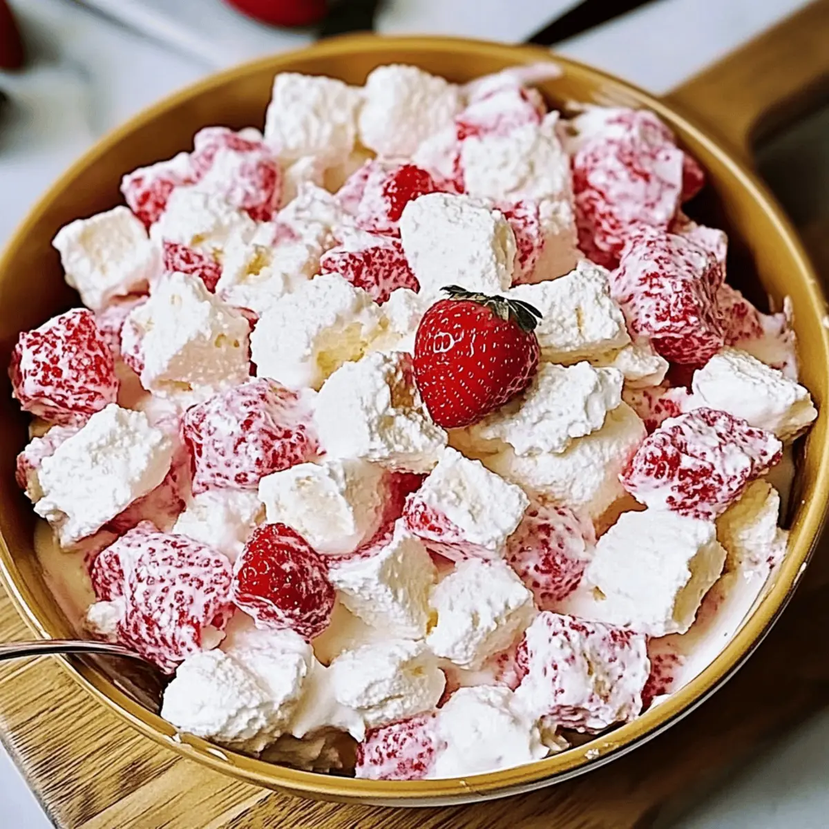 Fluffy, fruity bliss: The light texture of whipped cream and marshmallows mingles perfectly with fresh strawberries, creating a delightful dessert.