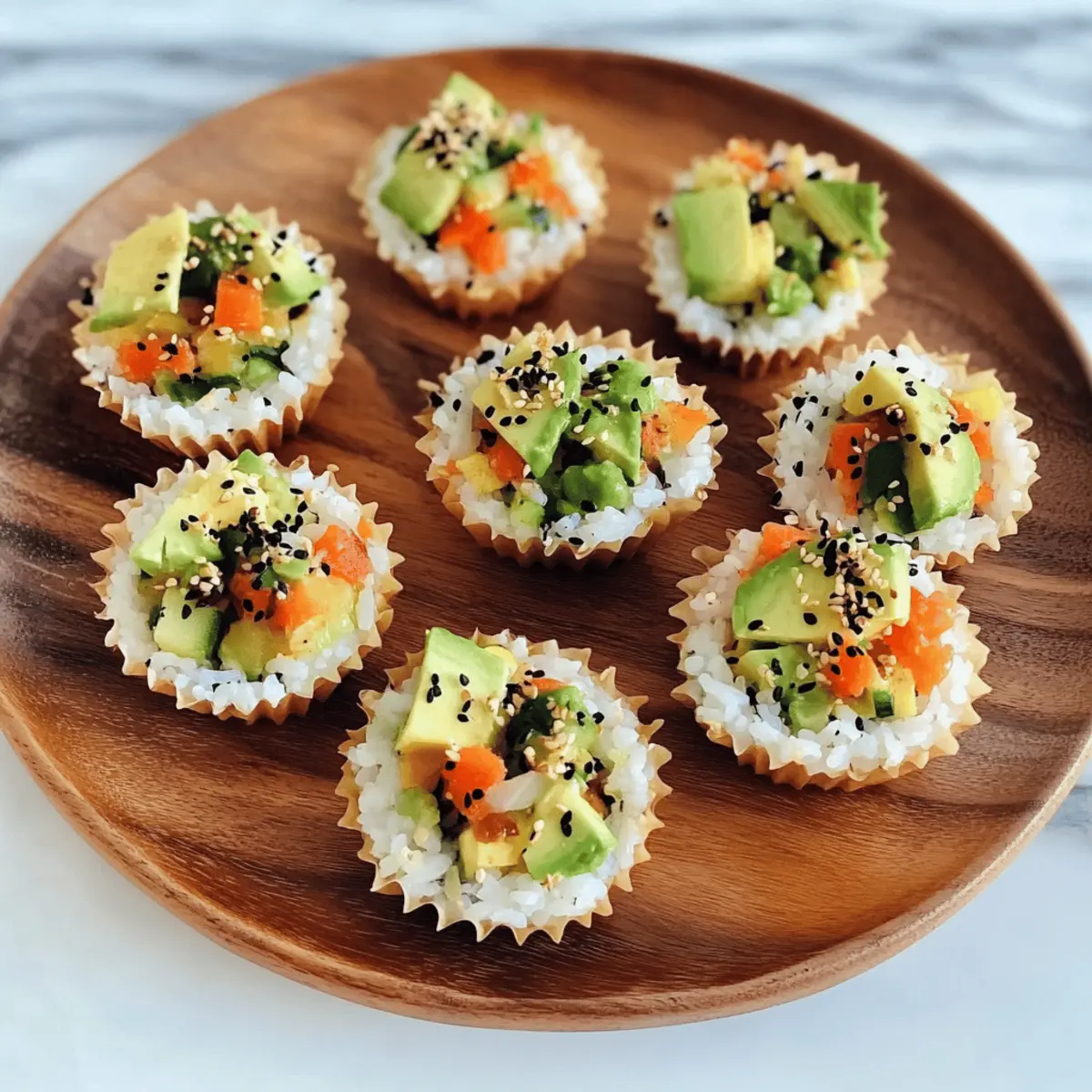 Great question! For those looking to boost the protein content, consider adding ingredients like imitation crab, cooked shrimp, or even chickpeas. If you’re using proteins, mix them with your finely chopped veggies before filling the rice cups. Just ensure they’re in bite-sized pieces for the best texture and taste!