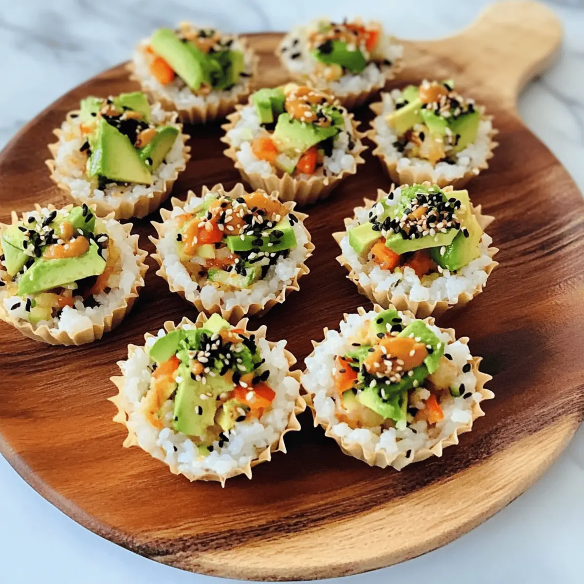 Certainly! These sushi cups can be easily adapted for various dietary needs. For gluten-free diets, make sure to use tamari or coconut aminos instead of soy sauce. If you’re accommodating vegans, simply replace traditional mayonnaise with plant-based mayo and omit the honey. The customizable nature allows these cups to fit many dietary preferences, making them perfect for gatherings!