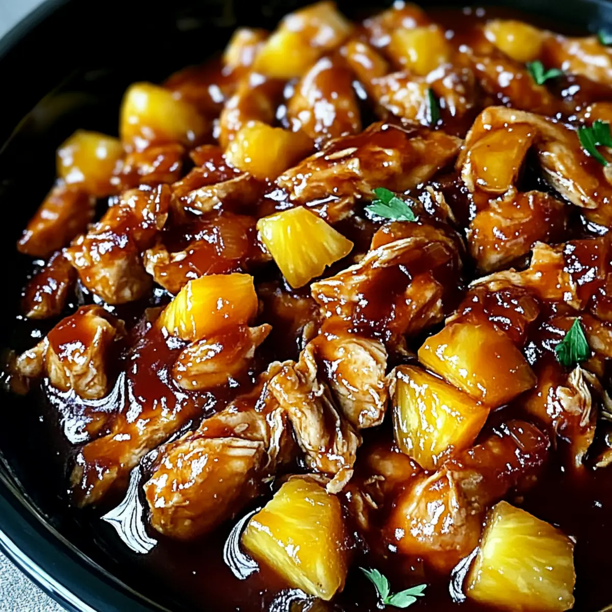 - Pour the Sauce Mixture: Pour over chicken and pineapple layers, ensuring even coating.