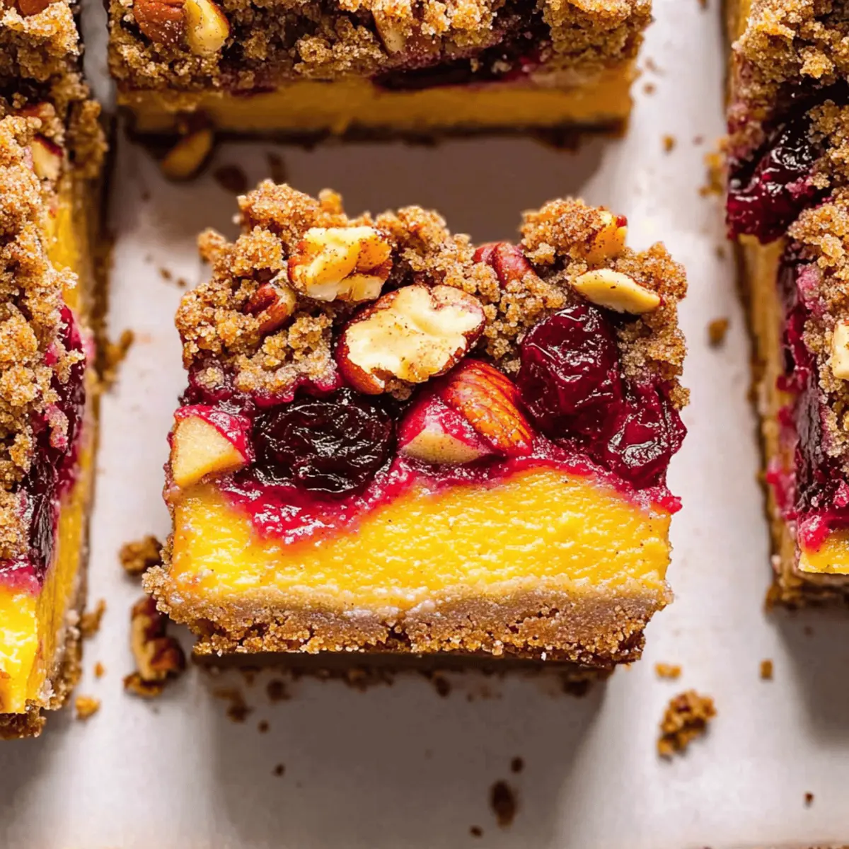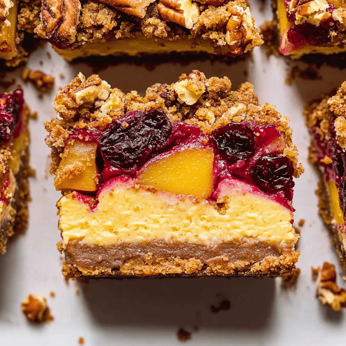 Flavor Explosion: Each bite combines creamy pumpkin cheesecake with layers of tart cranberries and sweet apples, evoking the essence of Thanksgiving.