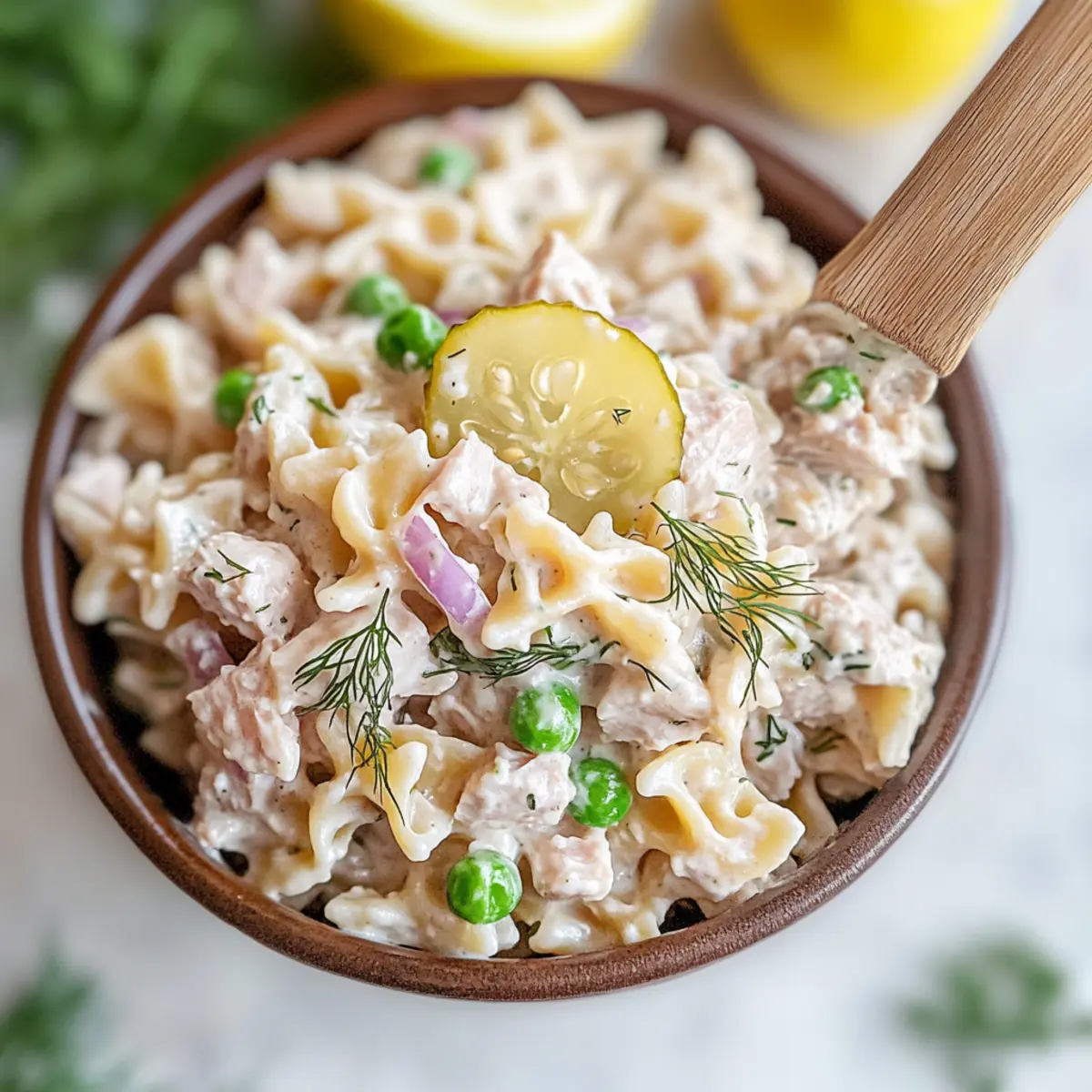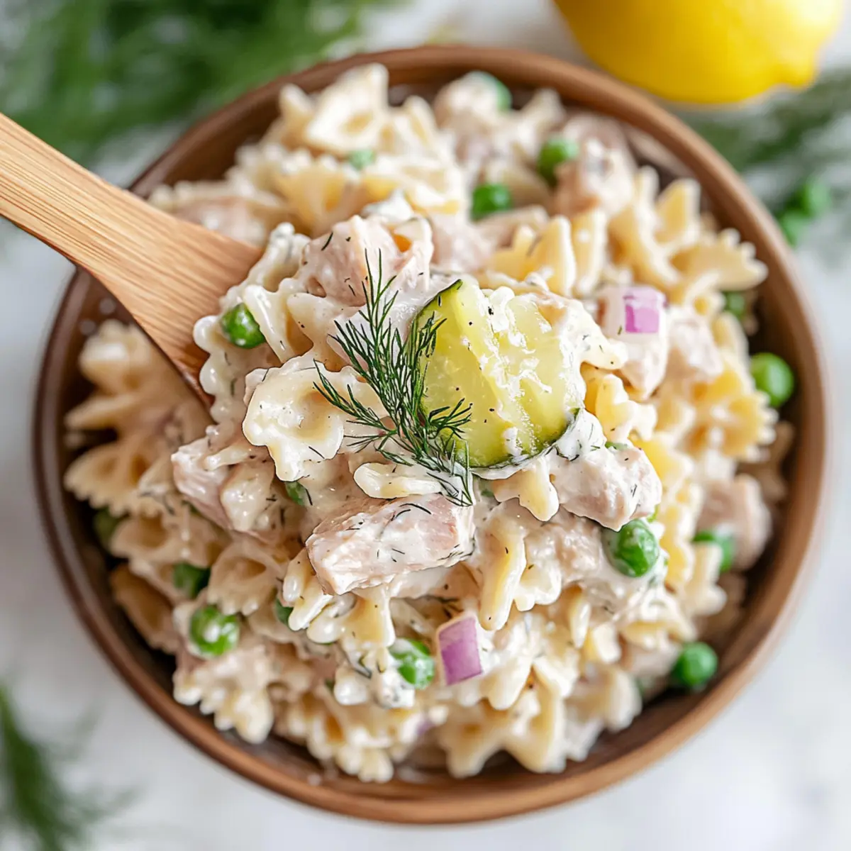 As the sun begins to warm the crisp air of summer, I find myself craving light, refreshing meals that are both satisfying and uncomplicated. Enter my creamy Tuna Pasta Salad with Dill—a dish that perfectly marries flaky tuna, tender bowtie pasta, and crunchy dill pickles, tossed in a zesty lemon-mayo dressing. This quick salad isn’t just a breeze to whip up; it’s also a fantastic way to bring delight to your lunch or dinner table. Ideal for weekends at the park or a last-minute picnic, this recipe is versatile enough to cater to all your summer needs. Have you ever found a tune that sings through your tastebuds? Stick around, and let’s dive into making this deliciously easy dish!