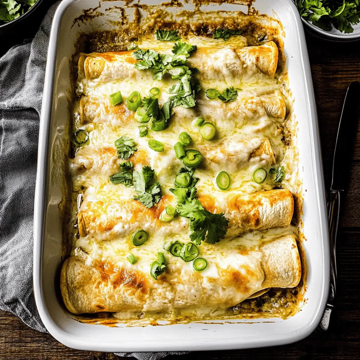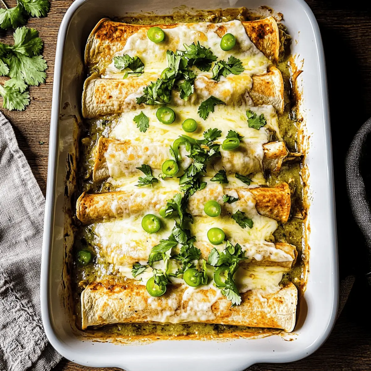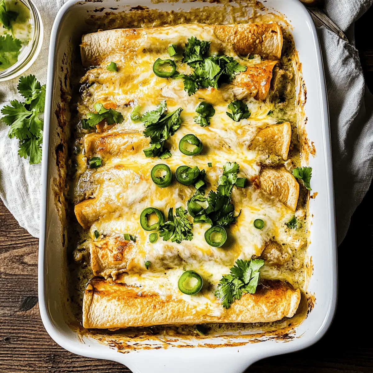 Reheating: Thaw frozen enchiladas overnight in the fridge. Reheat in the oven at 350°F (175°C) for about 20-25 minutes until heated through, ensuring that the cheesy, creamy goodness floats your taste buds!