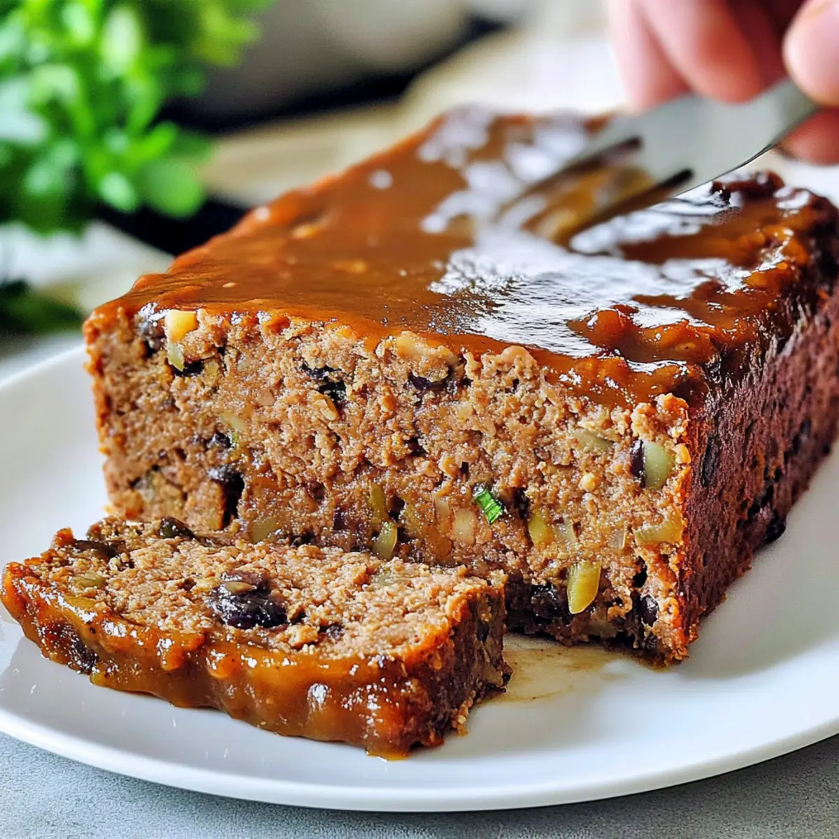 Planning ahead with this Flavor-Packed Vegan Meatloaf can save precious time during your busy holiday preparations! You can prepare and assemble the meatloaf mixture up to 24 hours in advance. Simply complete steps 1 through 3 and then transfer the mixture into the lined loaf pan. Cover it tightly with plastic wrap and refrigerate until ready to bake. This not only allows the flavors to meld beautifully but also simplifies your cooking process. When you’re ready to serve, preheat your oven and bake as directed. Just remember, for the best texture, refrigerate the assembled loaf for a few hours or overnight to achieve a firmer consistency—ensuring it’s just as delicious when it hits the table!