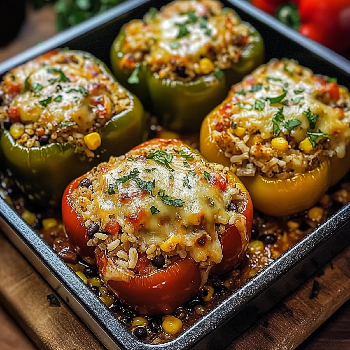Stuffed Bell Peppers, a hearty vegetarian comfort food that delights your taste buds with wholesome ingredients.