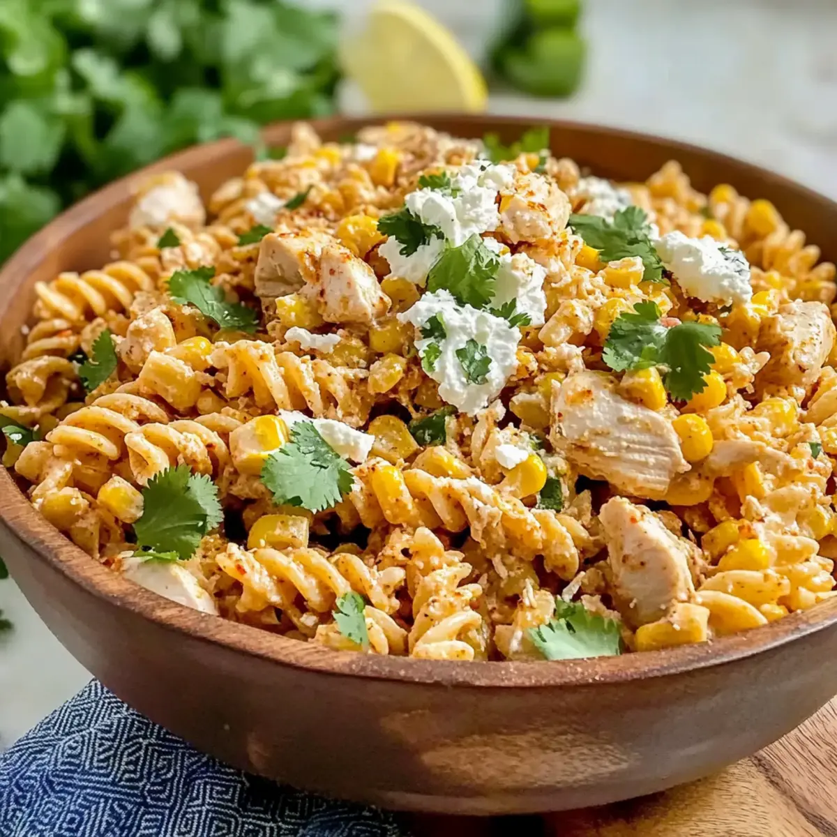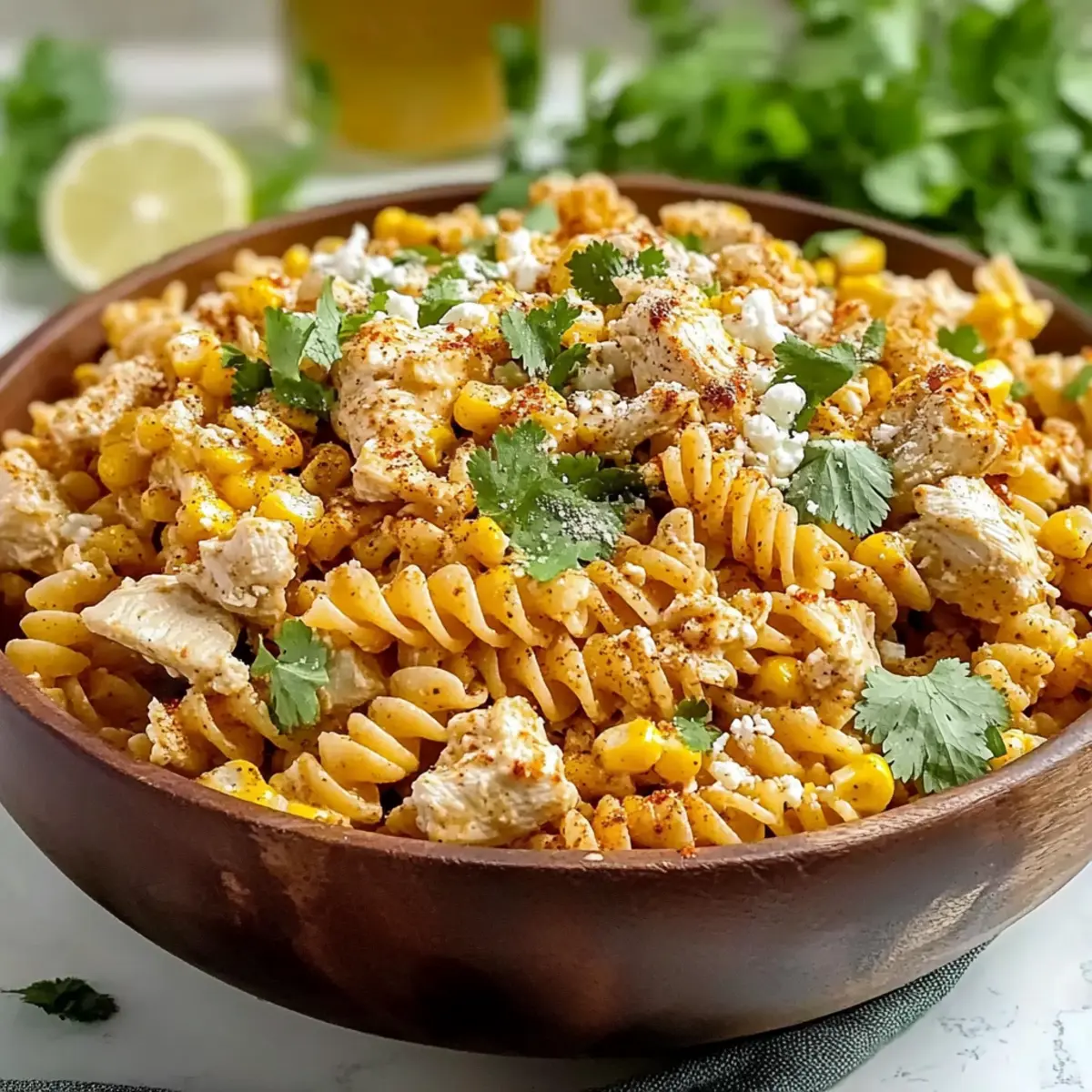 • Garnish Wisely: Finish your salad with extra cotija cheese and fresh lime wedges right before serving. This adds a pop of color and tanginess that elevates your Zesty Mexican Street Corn Chicken Pasta Salad!